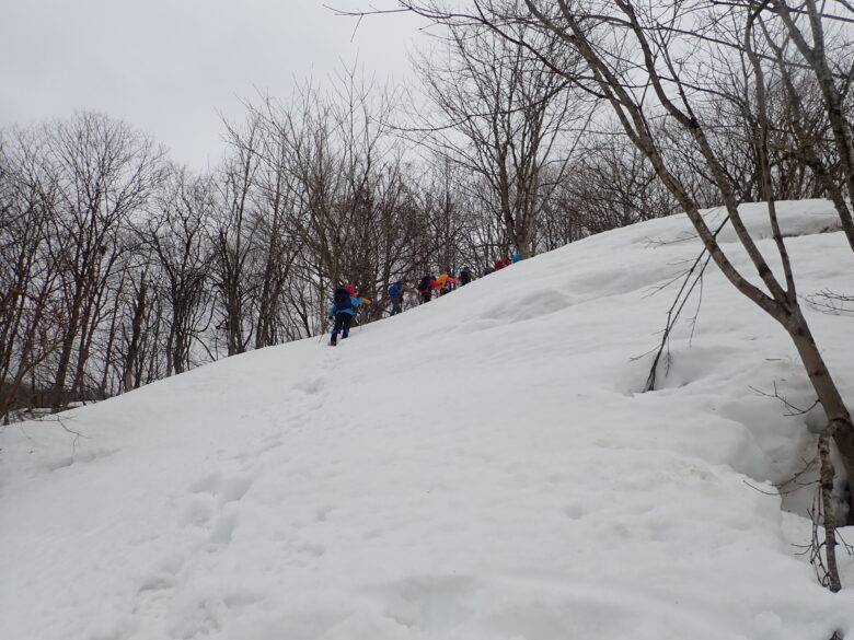 所々雪が切れているのでルートを決めて登りました。