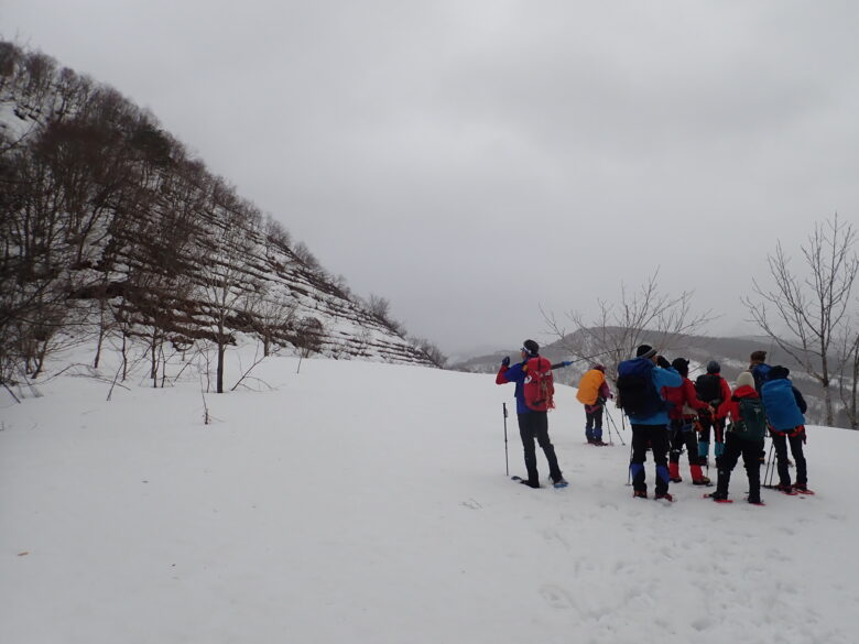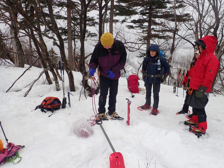 広い場所でお昼をとり雪上講習会。