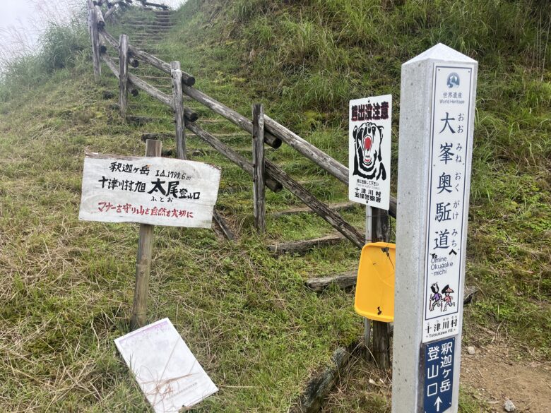 登山口まで10kmくらいクネクネの山道を登ってきました。