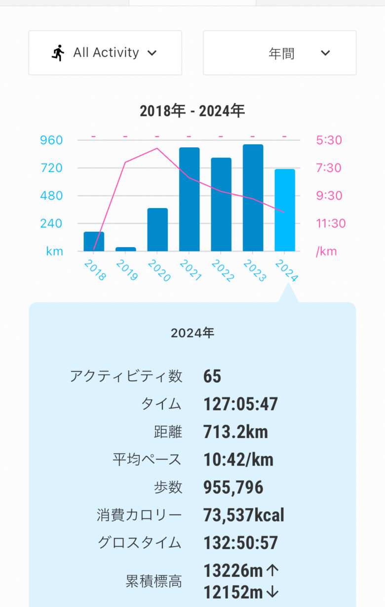 月間走行距離 2024年11月 2024年12月27日 最終更新日時 : 2024年12月27日 みかん 距離 49.0km 時間 9:07:02 平均ペース 11.10/km 累積標高 アップ 2128m ダウン 2076m アクティビティ 3 (ロード2 トレイル1) Table of Contents Toggle感想関連記事 感想 お天気の悪い日が続き練習しなかった。 それでもエントリーしたレースには出ないと思い出走。 思いの外走れたが練習不足をかなり実感した。 これから寒い時期に入り更に練習しなくなると思う。 室内での練習を取り入れないと行けない。 \ 最新情報をチェック / @Azukimame64 X